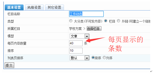 基本设置---每页显示内容数量的设置,一般默认即可,可以自己调整